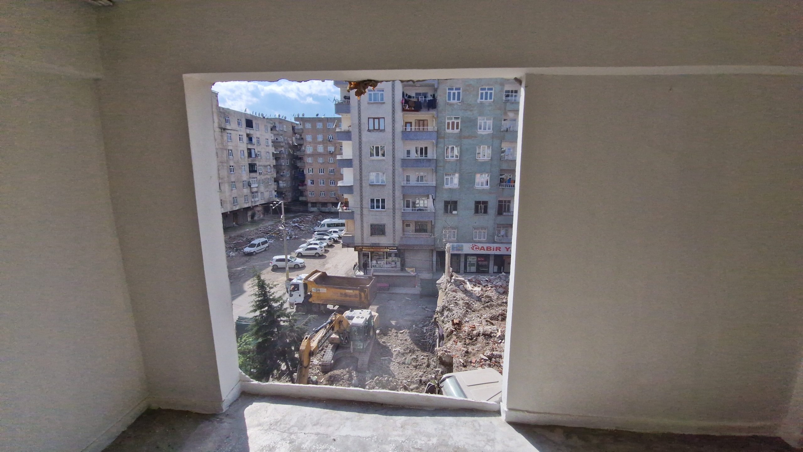 Diyarbakır’da ağır hasarlı 5 katlı binanın yıkımı sırasında, bitişikteki 7 katlı apartmanın ilk 5 katındaki bazı odaların duvarının yapılmadığı ortaya çıktı.